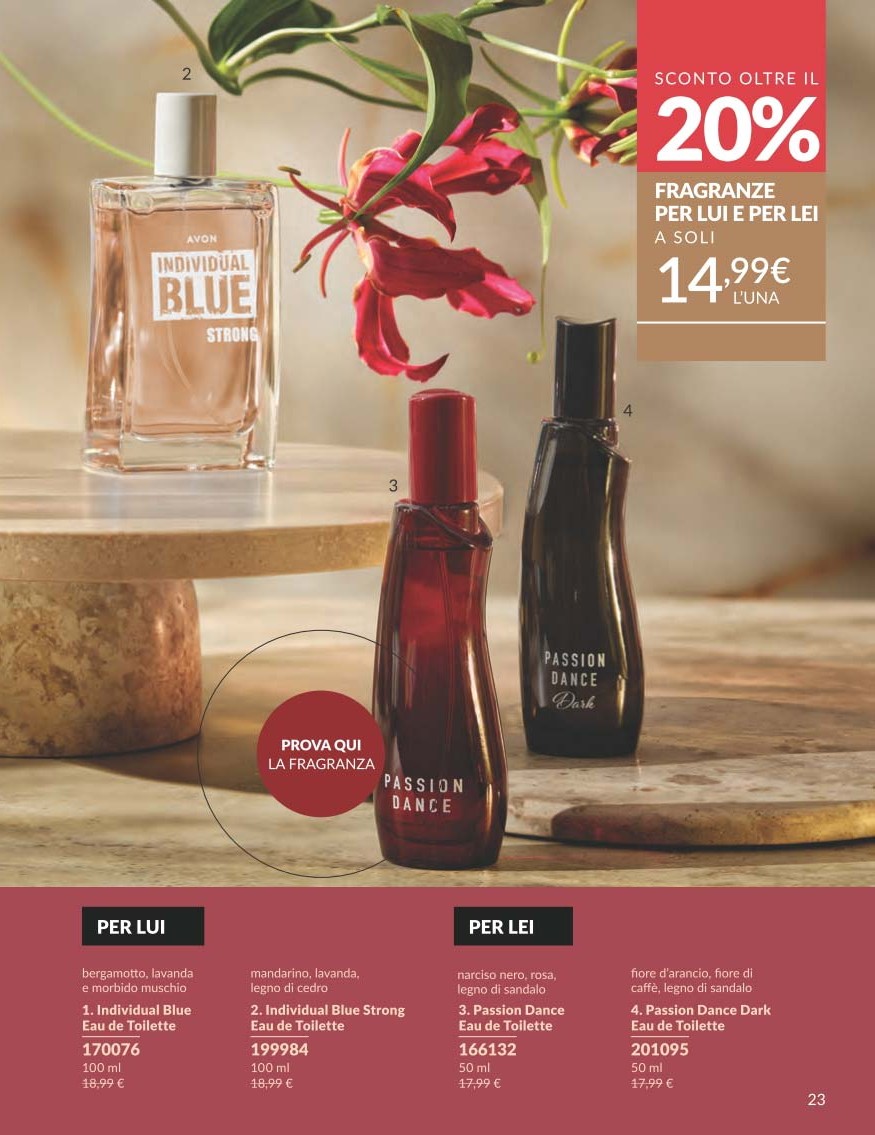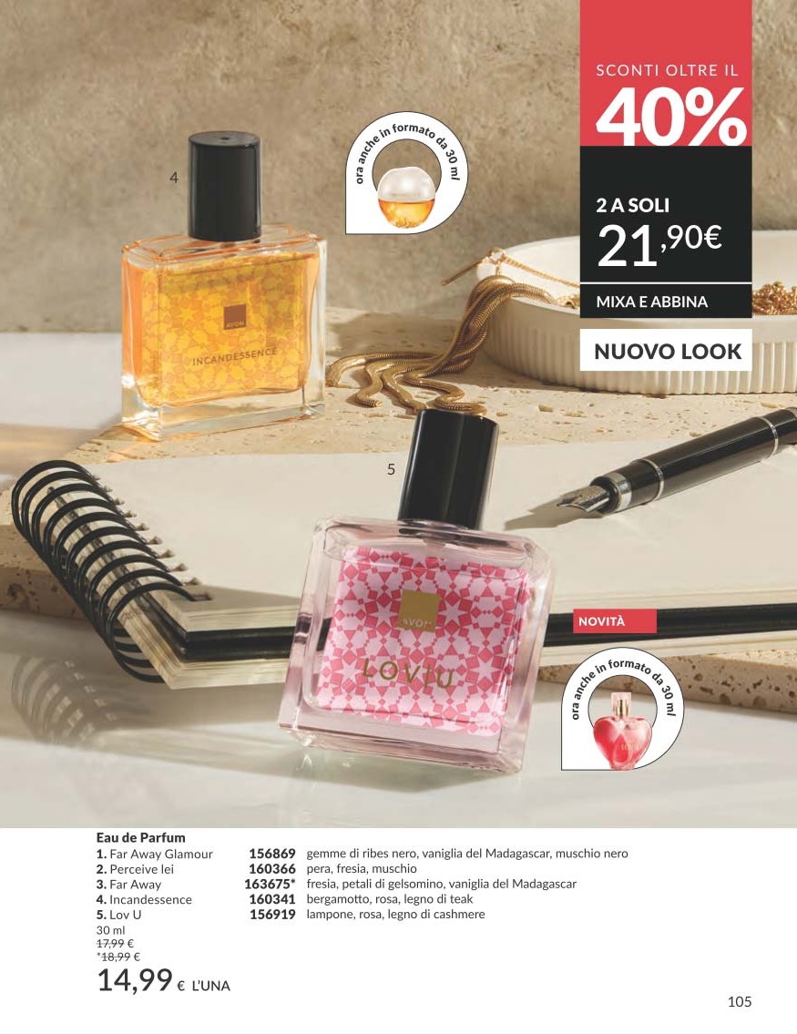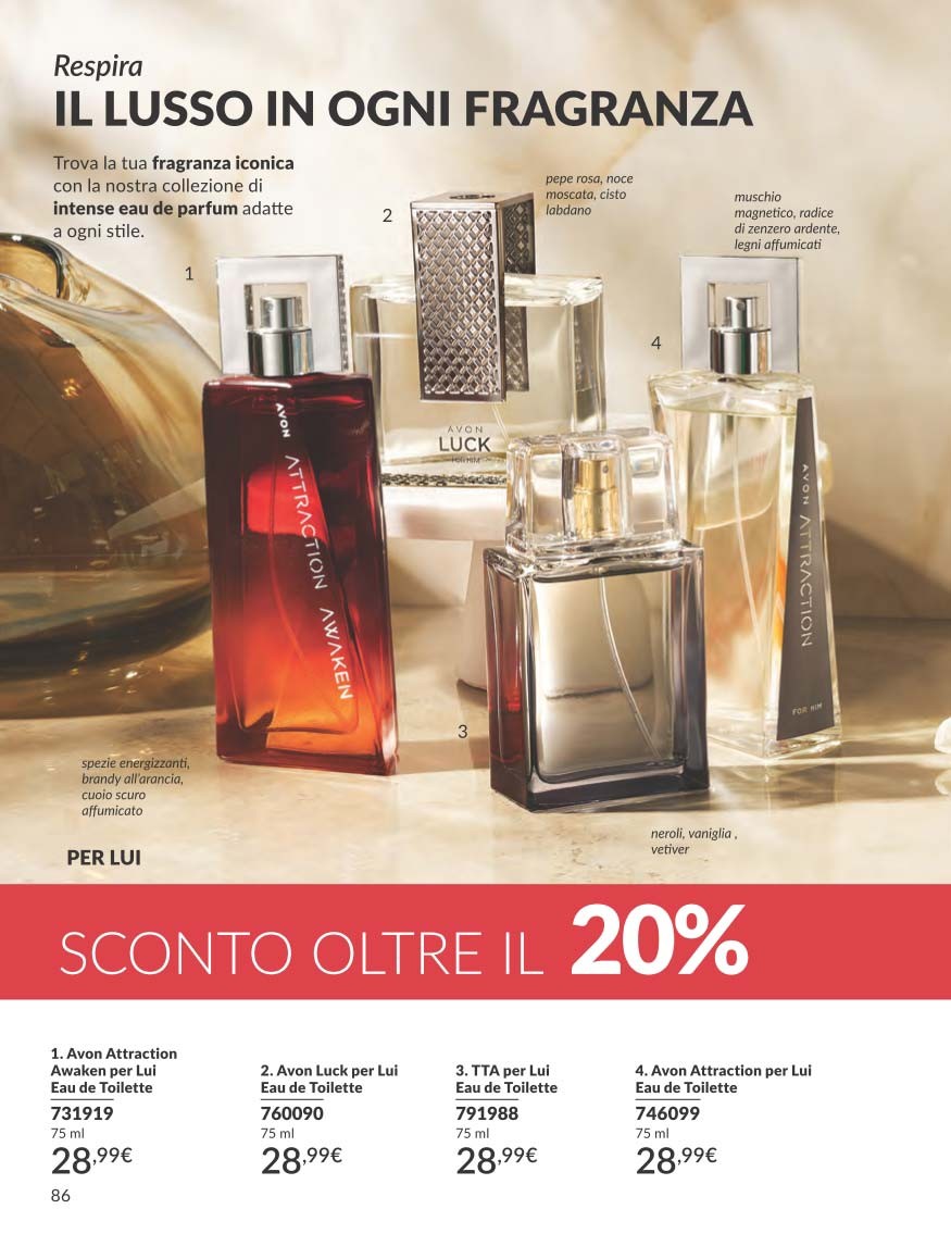 Per completare il Catalogo Avon Campagna 10 2025, troviamo una selezione di profumi scontati oltre il 20%, pensati sia per lui che per lei.