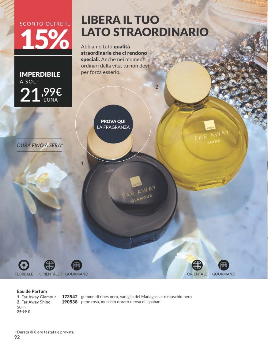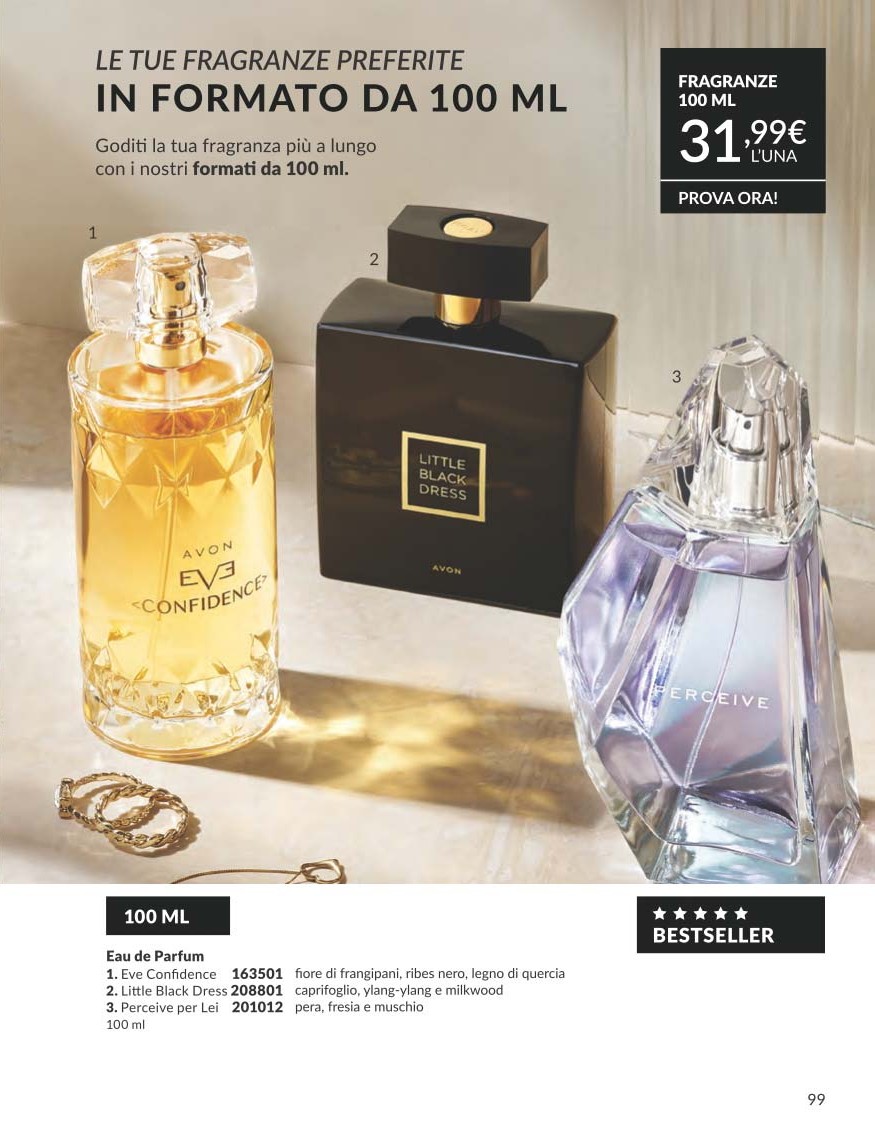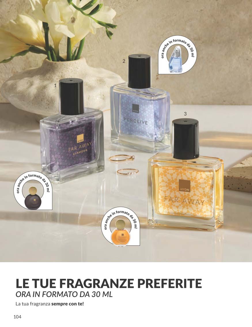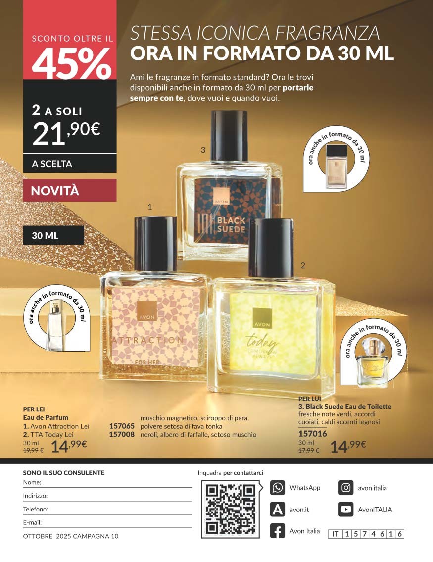 Per completare il Catalogo Avon Campagna 10 2025, troviamo una selezione di profumi scontati oltre il 20%, pensati sia per lui che per lei.