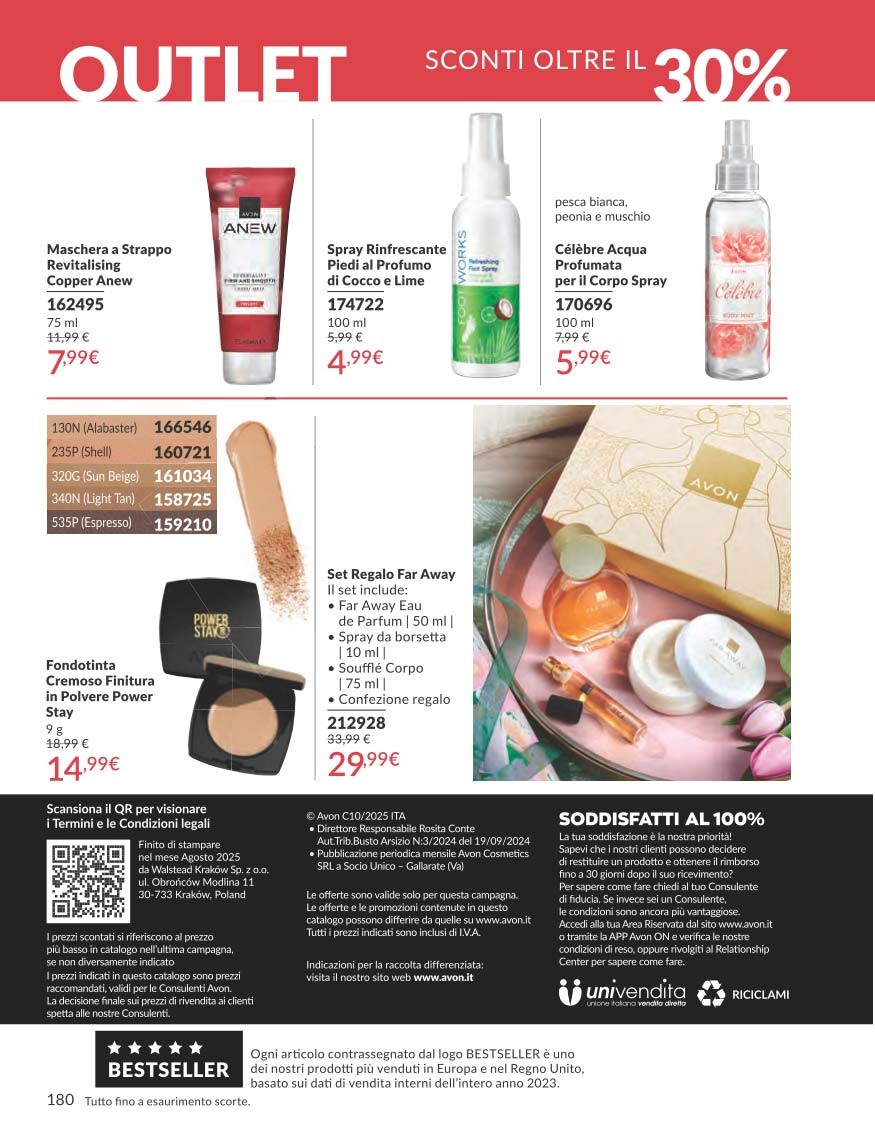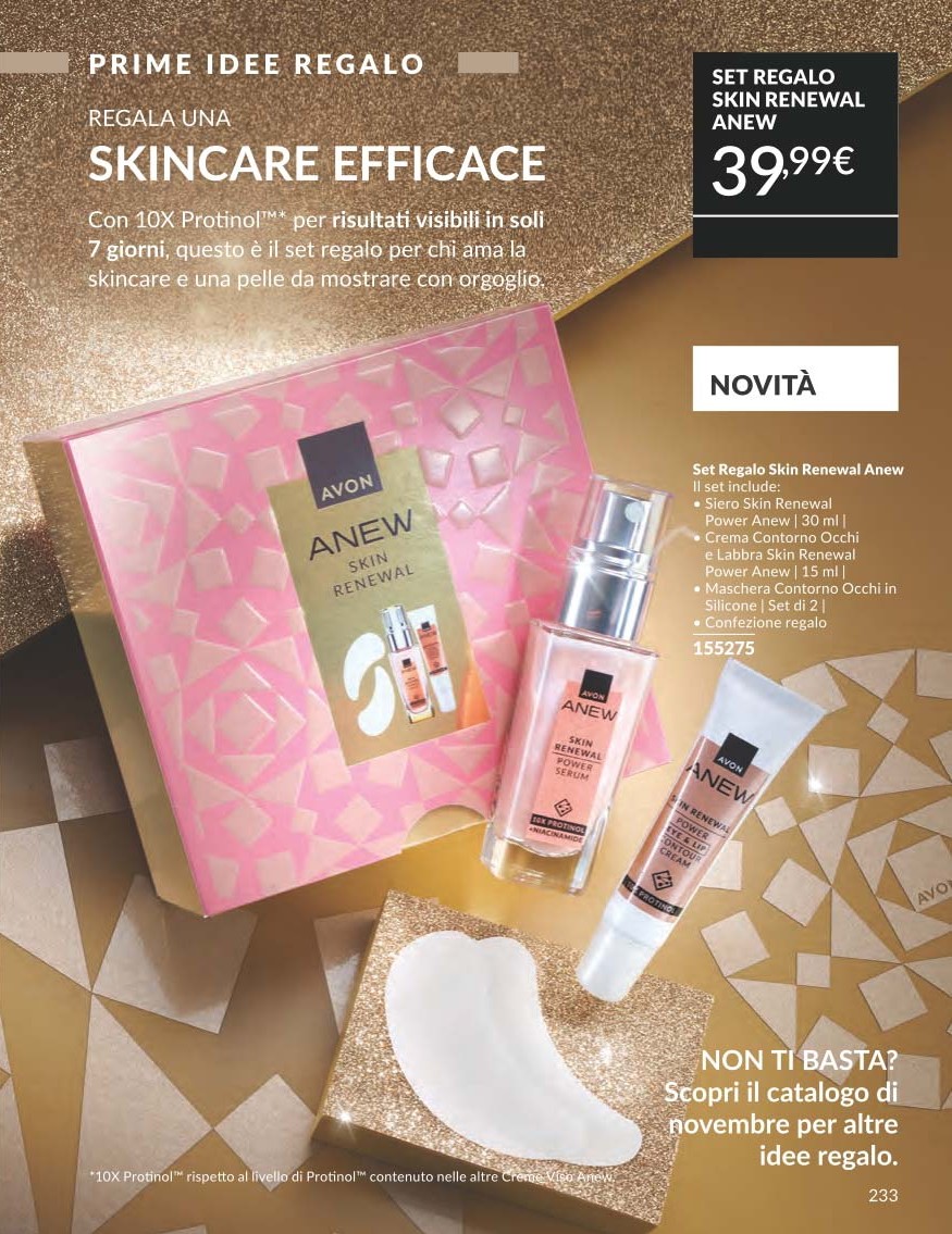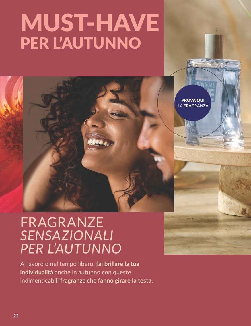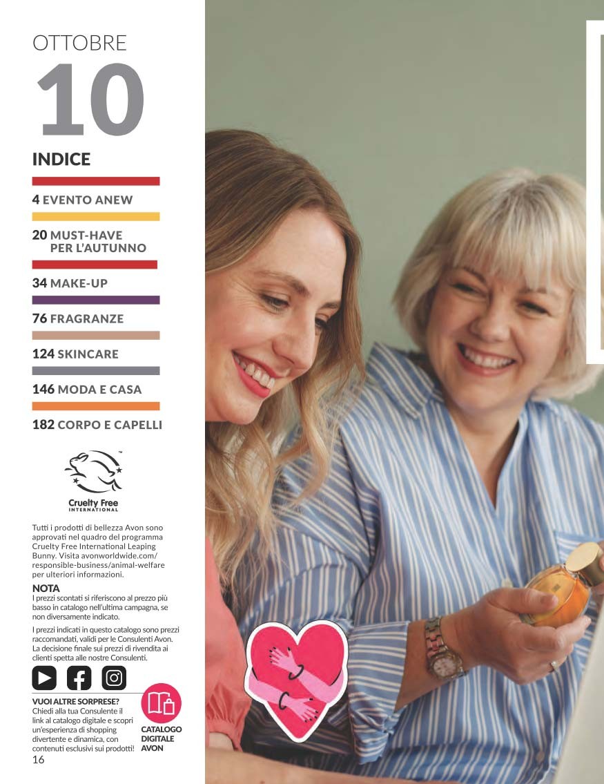 Il Catalogo Avon Campagna 10 2025 Ottobre porta con sé una ventata di innovazione e benessere per la pelle, con prodotti pensati per valorizzare la bellezza naturale e offrire risultati visibili grazie alla ricerca dermatologica Avon. Dalle linee skincare Anew con tecnologia Protinol™ ai rossetti rigeneranti, passando per profumi e trattamenti solidali, questo catalogo è un invito a riscoprire la cura di sé con qualità e convenienza.